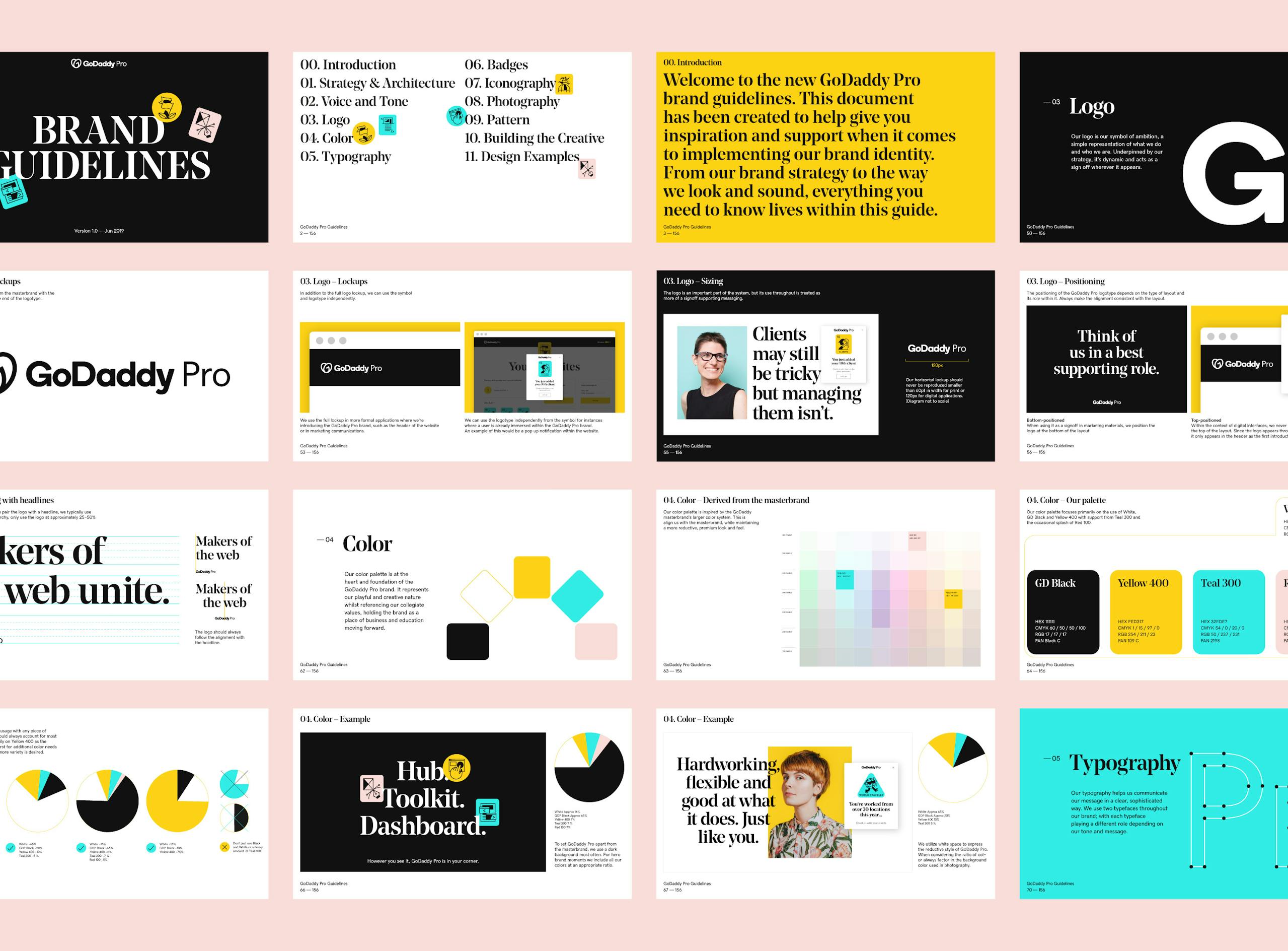 GoDaddy loves designers and developers, those folks whose work beautifies the web, so we reimagined our GoDaddy Pro sub-brand so it resonated with this important customer segment. Joining forces with the talented crew at Koto, we crafted a bold, new identity distinct from, but also a recognizable extension of, GoDaddy’s core brand.
