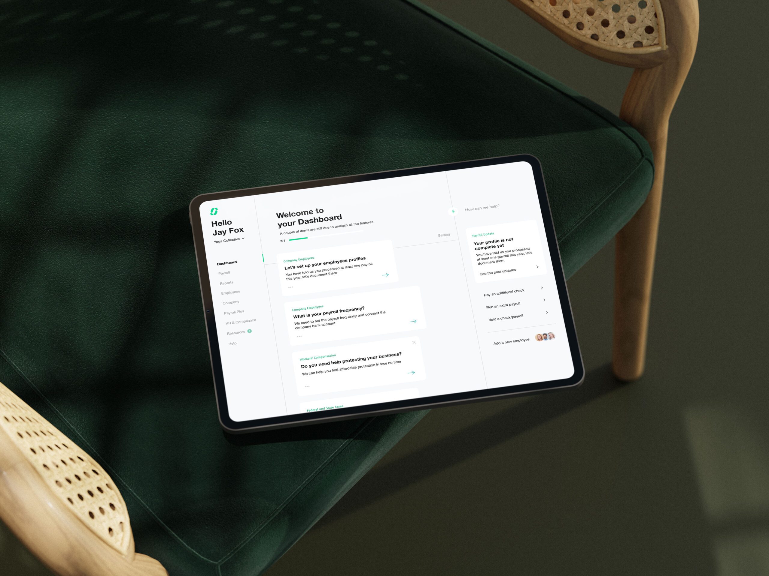 This hybrid dashboard allowed users to run their first payroll quickly while finishing the remaining onboarding tasks at their own pace. The result was a smoother, more rewarding experience that reduced friction, built confidence, and reflected the warmth of the new brand.