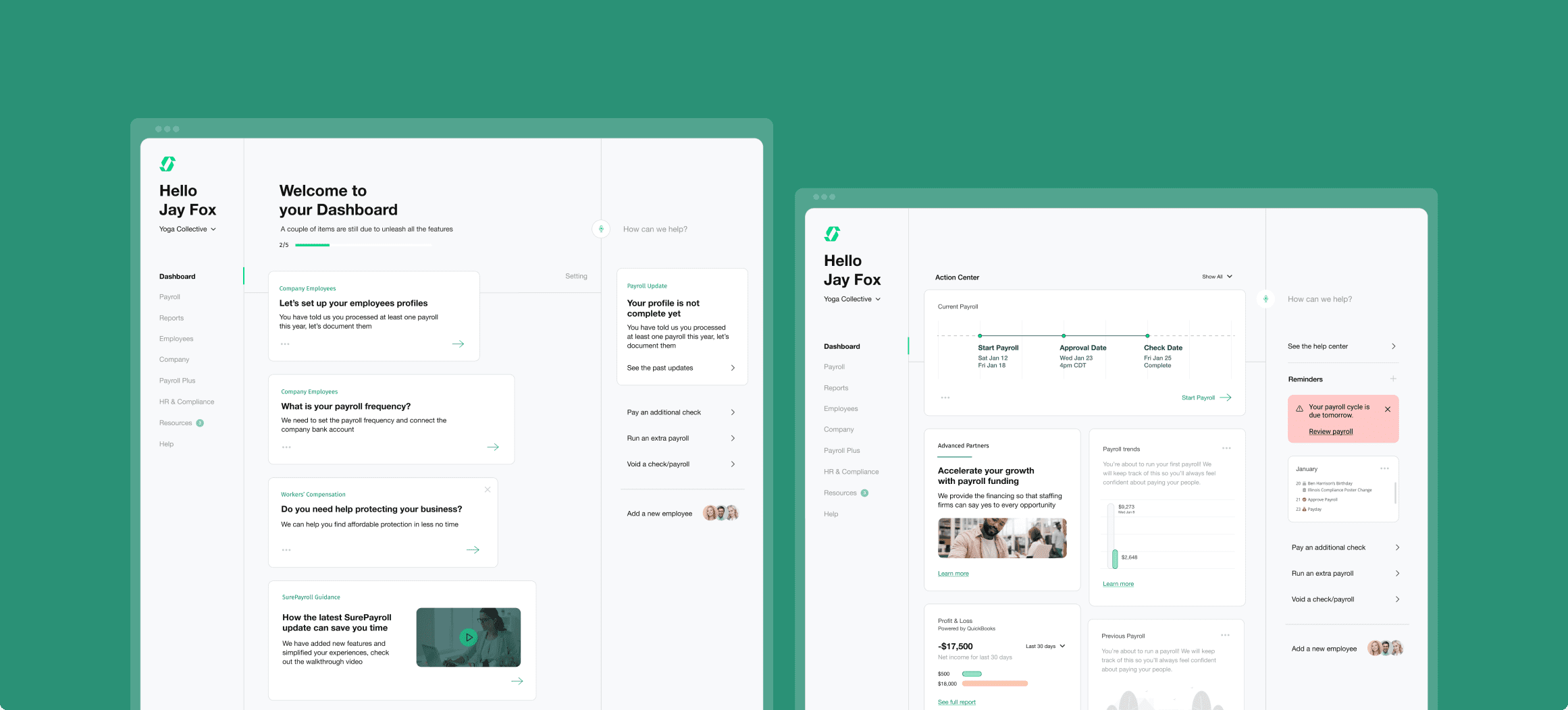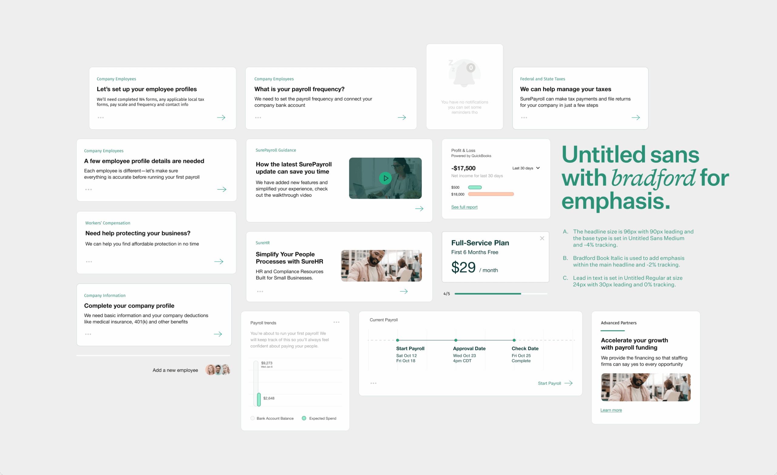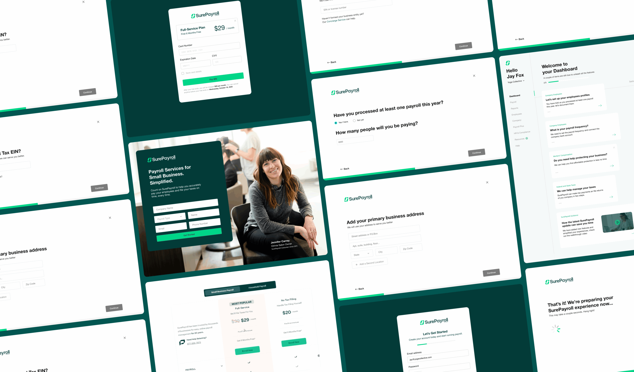 SurePayroll had just gone through a major rebrand, and my role was to bring that new identity to life within the product—focusing on the onboarding and dashboard experience.